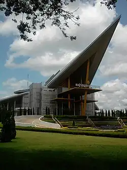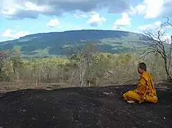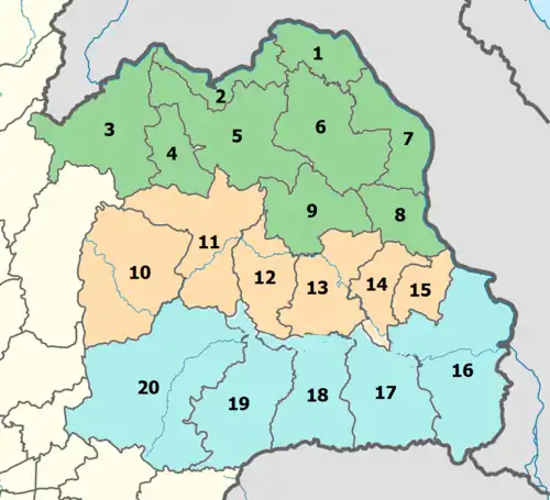 Northeast Thailand or Isan (Isan/Thai: อีสาน, pronounced [ʔīː.sǎːn] ; Lao: ອີສານ, romanized: Īsān; also written as Isaan, Isarn, Issarn, Issan, Esan, or Esarn; from Pāli 𑀇𑀲𑀸𑀦 isāna or Sanskrit ईशान्य īśānya "northeast")[4] consists of 20 provinces in northeastern Thailand. Isan is Thailand's largest region, on the Khorat Plateau, bordered by the Mekong River (along the Laos–Thailand border) to the north and east, by Cambodia to the southeast and the Sankamphaeng Range south of Nakhon Ratchasima. To the west, it is separated from northern and central Thailand by the Phetchabun Mountains. Isan covers 167,718 km2 (64,756 sq mi), making it about half the size of Germany and roughly the size of England and Wales. The total forest area is 25,203 km2 (9,731 sq mi) or 15 percent of Isan's area.[1]