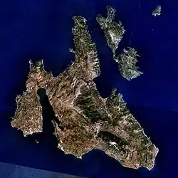 Ithaca's main island has an area of 96 square kilometres (37 sq mi) and in 2021 had a population of 2,862. It is the second-smallest of the seven main Ionian Islands, after Paxi. Ithaca is a separate regional unit of the Ionian Islands region, and the only municipality of the regional unit. The capital is Vathy (or Vathi).[1][2]
