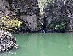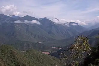 In the southwest of the state, there are a number of small rivers that empty directly into the Pacific Ocean. The most important of these is the Ameca, with its one main tributary, the Mascota River. This river forms the state's border with Nayarit and empties into the Ipala Bay.[37] The Tomatlán, San Nicolás, Purificación, Marabasco-Minatitlán, Ayuquila, Tuxcacuesco, Armería and Tuxpan rivers flow almost perpendicular to the Pacific Ocean and drain the coastal area.[36] Another river of this group is the Cihuatlán River, which forms the boundary between Jalisco and Colima emptying into the Barra de Navidad Bay.[37] The southeastern corner belongs to the Balsas River basin.[36] This includes the Ayuqila and Tuxcacuesco, which join to form the Armería and the Tuxpan.[37]