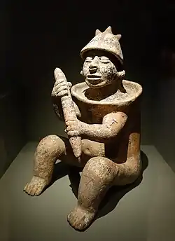 Agriculture began in the same region around 7,000 years ago, giving rise to the first permanent settlements in western Mexico.[17] Ceramics began to be produced about 3,500 years ago for both utilitarian and ceremonial purposes. The oldest pieces of Jalisco area pottery are called El Opeño, after an area near Zamora, Michoacán and Capacha after an area in Colima. The appearance of these styles indicates a certain specialization of labor, with distinct settled cultures established by 1000 BCE.[17] The earliest settled cultures were centered on the site of Chupícuaro, Guanajuato, which has a large zone of influence from Durango east, crossing through modern Jalisco's north. Sites related to these cultures have been found in Bolaños, Totoate, the Bolaños River Canyon and Totatiche as well as other locations in the Los Altos Region.[17] Cultures dating to the early part of the Christian era are distinguished by the use of shaft tombs, with major examples found in Acatlán de Juárez, El Arenal and Casimiro Castillo. The use of this type of tomb is unknown anywhere else in Mexico.[17][19]