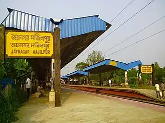 Jaynagar Majilpur railway station is on the Sealdah–Namkhana line of the Kolkata Suburban Railway.[31][33]