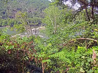 Tripoint of Virginia, West Virginia, and Maryland in the Potomac River region of Harper's Ferry, the lowest point in West Virginia