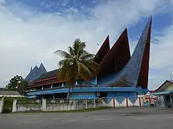 • Customs Museum (Malay: Muzium Adat) is a museum in Kuala Klawang which exhibits facets and lifestyle of the Malaysian people and identity of Negeri Sembilan.[13][14][15] It was constructed in 2005 and officially opened on 2 February 2008 by Negeri Sembilan Chief Minister Mohamad Hasan and Minister for Culture, Arts and Heritage Rais Yatim.[16] The museum is housed in a four-story building, with a giant replica of Malay headdress at the top of its entrance and consists of four galleries, which are: Introduction of custom, Life cycle, Intellectual tradition, government and power and Pepatih customs.[17][16]