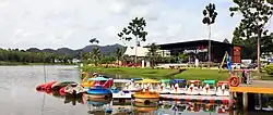 A few famous landmarks in Jitra are Darulaman Park,[1] Jitra Waterfront (behind police quarters), Rocky Dog Park, Tasik Darulaman with new Waterpark adventure (Fantasia Aquapark), Cendol Pulut Jo[2] and Bukit Wang,[3] a recreational park. Located approximately 30 kilometres from Thailand border, Jitra becomes one of the many stops for tourists who came from the neighboring country or Malaysian who wanted to visit Thailand.