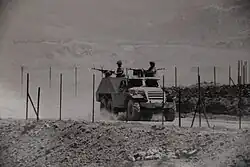 Concurrently, on 14 May Syrian forces began attacking via the Syrian-Mandate border in a series of engagement called Battles of the Kinarot Valley. The Syrians thrust down the eastern and southern Sea of Galilee shores, and attacked Samakh the neighboring Tegart fort and the settlements of Sha'ar HaGolan, Ein Gev, but they were bogged down by resistance.[27] Later, they attacked Samakh using tanks and aircraft, and on 18 May they succeeded in conquering Samakh[28] and occupied the abandoned Sha'ar HaGolan.[27] On 21 May, the Syrian army was stopped at kibbutz Degania Alef, at the northern edge of the Jordan valley. where local militia reinforced by elements of the Carmeli Brigade halted Syrian armored forces with Molotov cocktails, hand grenades and a single PIAT. The remaining Syrian forces were driven off the next day by four Napoleonchik mountain guns.[29] Following the Syrian forces' defeat at the Deganias a few days later, they abandoned the Samakh village. Following the heavy fighting, the Arab inhabitants of the city of Beit She'an in the northern valley fled across the Jordan River.[30]