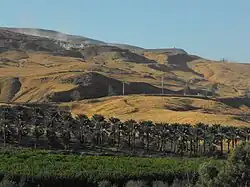 The area's fertile lands were chronicled in the Old Testament.[7] Modern methods of farming have vastly expanded the agricultural output of the area.[7] The construction of the East Ghor Canal by Jordan in the 1950s (now known as the King Abdullah Canal), which runs down the east bank of the Jordan Valley for 69 kilometers, has brought new areas under irrigation.[7] The introduction of portable greenhouses has brought about a sevenfold increase in productivity, allowing Jordan to export large amounts of fruit and vegetables year-round.[7]