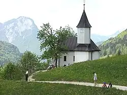 The Kaisertal (formerly Sparchental) is a striking mountain valley between the mountain chains of the Zahmer and Wilder Kaiser in Austria's Kaisergebirge range in the Tyrol. In the ravine (Sparchenklamm) on the valley floor flows the stream of the Kaiserbach (Sparchenbach), which discharges north of Kufstein into the Inn (river). It is home to several, scenic isolated farms (e.g. the Pfandlhof and Veitenhof). A popular calendar image is St. Anthony's Chapel (Antoniuskapelle) on the Kaisertal footpath in the centre of the valley.