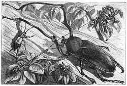The next day (October 16th [1858]) I went beyond the swamp, and found a place where a new clearing was being made in the virgin forest... I have never in my life seen beetles so abundant as they were on this spot. Some dozen species of good-sized golden Buprestidae, green rose-chafers (Lomaptera), and long-horned weevils (Anthribidae) were so abundant that they rose up in swarms as I walked along, filling the air with a loud buzzing hum. Along with these, several fine Longicorns were almost equally common, forming such an assemblage as for once to realize that idea of tropical luxuriance which one obtains by looking over the drawers of a well-filled cabinet... It was a glorious spot, and one which will always live in my memory as exhibiting the insect-life of the tropics in unexampled luxuriance.