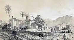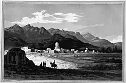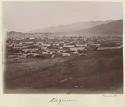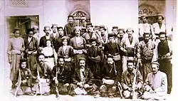 In June 1824, a severe earthquake occurred in Kazerun that killed a few thousand people.[93] Following the Persian famine between 1870 and 1872, out of the population of about 10,000 people in the city of Kazerun, about 4,000 people were killed and about 4,000 people were forced to emigrate, and the population of the city of Kazerun decreased to about 2,000 people, which is considered one of the biggest tragedies and demographic shocks in the history of this city. Kazerun was one of the cities with the highest percentage of people killed in this famine.[94][95] After the Qajar dynasty came to power, the Afshar clan, who had previously fought alongside Agha Mohammad Khan Qajar for his rise to power, were again assigned to the government of Kazerun. The last person of this dynasty who ruled Kazerun was a person named Khajeh Abbas Qoli Khan Afshar Kazeruni who was deposed in 1844 and the rule of Kazerun was removed from the hands of the Afshar dynasty after about 350 years.[96] After that, the ruler of Kazerun was appointed by the central government and different people ruled in Kazerun. For example, in 1856 and during the time of Naser al-Din Shah Qajar, Ali Mohammad Khan Qavam al-Mulk was appointed to the government of Kazerun. At one time, Teymur Mirza, the grandson of Fath-Ali Shah Qajar, was in charge of Kazerun. After that, Amir Azodi's family came to power in Kazerun. Khajeh Hassan Ali was the sheriff of Kazerun for a while, and after him, his son, Khajeh Ebrahim Kalantar was the sheriff. After the death of Khajeh Ebrahim, his brother Khajeh Abdollah Amir Azodi, known as Naser Divan Kazeruni, became the sheriff of Kazerun.[88] The end of the Qajar rule coincided with the First World War and the occupation of southern Iran by the British. Naser Divan Kazeruni, the sheriff of Kazerun, declared war on the British and fought with them for years. During these years, the city of Kazerun and its surroundings were the scene of many battles.