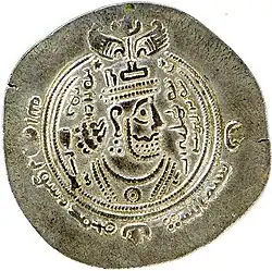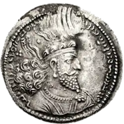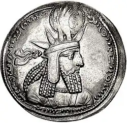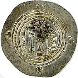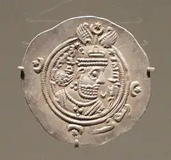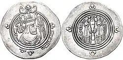 A coin with the image of Khosrow II, minted in Bishapur
