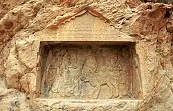 Bishapur was also the birthplace of Hormizd I and Bahram I, two Sassanid kings.[47][48] Valerian, the captured emperor of Rome, lived in the palace he built for him in the city of Bishapur on the orders of Shapur I.[49][50][51] According to some accounts, he also died in this city. Shapur I, the Sassanid king also died in 270 AD in the city of Bishapur.[52] In the 5th and 6th centuries AD, Kavad I tried to settle the city of Kazerun and expanded it.[53] Until the Arab conquest of Persia, Bishapur was a prosperous city with a population between 50,000 and 80,000 people.[54]