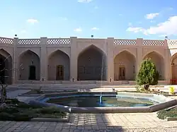 The caravanserai dates to the Sasanian era. Later it was rebuilt and reconstructed under the command of Muhammad Vali Mirza, the son of Fath-Ali Shah Qajar. The large number of rooms and arcs in this caravanserai prove that Kharanaq was a busy place where many travelers used to stay. It has a yard in the center and it is surrounded by rooms. Today, tourists can reserve the rooms and spend the nights at Kharanaq Village Caravanserai.[13]