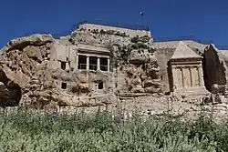 The upper Kidron Valley segment north of the Old City was one of the main burial grounds of Jerusalem in the Second Temple period, where hundreds of tombs have survived until today, while the segment east of, and opposite the Temple Mount, boasts several excellently preserved monumental tombs from the same period.[7] Several of the Second Temple period tombs were also used later in time, either as burial or as shelters for hermits and monks of the large monastic communities which inhabited the Kidron Valley during the Byzantine Empire period (4th–7th century).[7][8] The ancient tombs in this area attracted the attention of ancient travelers, most notably Benjamin of Tudela.[9]