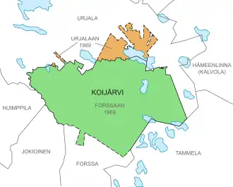 Koijärvi (Finnish pronunciation: [ˈkoi̯ˌjærʋi]; lit. 'moth lake')[a] is a former municipality of Finland in the former Häme Province, now in Kanta-Häme. It was split between Forssa and Urjala in 1969, most of the land was given to Forssa.