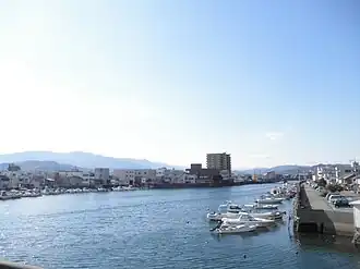 Komatsushima is located in eastern Tokushima Prefecture, south of Tokushima city, facing the Kii Channel. The city is built on the delta of the Katsuura River and is surrounded by mountains on its landward sides.