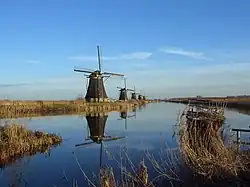 Today the pumps are powered by engines, in pre-industrial times and sometimes even into the period of intense industrialisation, they were driven by wind power (wind pumps). The groups of wind mills on the dykes of the Rhine delta - a symbol of the Netherlands - are old water pumps.