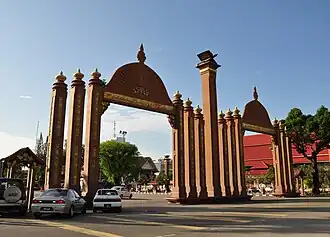 Sultan Ismail Petra arch outside the Royal Palace Siti Khadijah Market Muhammadi Mosque Jahar Palace Kelantan Museum Kelantan Islamic Museum | |