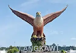 The main highlight of Dataran Lang (Malay for 'Eagle Square') is a 12-meter high sculpture in the shape of a sea-eagle perched on rocks in pre-flight pose. It is located on the waterfront of Kuah near the jetty. The eagle is the emblem of Langkawi Island as its name is thought by some to have been derived from the Malay word for eagle. The square is a landscaped area with ponds, terraces and bridges.[3]