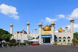 The Al-Hana Mosque is one of Langkawi's largest and most popular mosques. It is located in Kuah to accommodate Muslim patrons and allows visitors who come to view the architecture. The mosque incorporates motifs and carvings from Uzbekistan along with traditional Malay elements. The mosque was opened by the first Prime Minister of Malaysia Tunku Abdul Rahman in 1959.