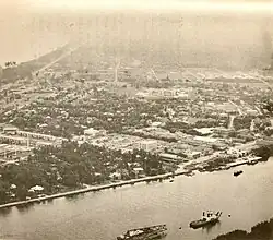 The 1930s marked a period of rapid growth for Kuala Belait, largely driven by the BMPC. In 1931, the town became the site of Brunei's first English school, and it also boasted the best hospital in the country at the time. Its population grew significantly, from 1,193 in 1931 to 3,000 by 1935, fueled by the thriving oil industry. Despite this progress, the town was heavily bombed during World War II, leading to widespread destruction and the need to rebuild.[13] The BMPC also played a crucial role in infrastructure development, constructing a telephone line along the Belait coastline earlier in 1930, linking Seria and Rasau to their headquarters in Kuala Belait.[18] However, a telephone line connecting Kuala Belait to Tutong was dismantled in 1934 after failing to meet expectations.[19] By 1939, pipelines and roads between Kuala Belait and Miri had been established, further enhancing the town's connectivity and industrial growth.[20]