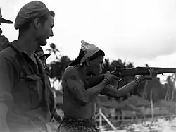 On 16 December 1941, Kuala Belait was captured after an amphibious assault on the Belait coast by 10,000 soldiers from the Japanese Kawaguchi Detachment. The town remained under Japanese occupation during World War II.[21] During this time, war crimes were committed by the Japanese,[22][23] including the massacre and execution of Indian prisoners of wars (POW) from the 2/15th Punjab Regiment. Additionally, 55 Indian prisoners died from starvation in the town's POW camp.[24] As part of Operation Oboe Six, the Australian 9th Division arrived in Kuala Belait on 24 June 1945,[25] leading to the recapture of the port. In 1949, reconstruction plans for the war-torn town were approved.[26][27]