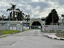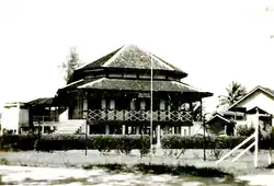 In 1950, concerned about the potential spread of Chinese Communist ideology among Kuala Belait's urban working-class population, the Brunei government relocated the police headquarters from Brunei Town to Kuala Belait and established both a Criminal Investigation Department and a Special Branch to enhance security.[28] The town experienced significant growth during the 1950s and 1960s, spurred by increased revenue from the booming oil industry.[29] Post-war development transformed Kuala Belait, with the construction of reinforced concrete shophouses, government offices, godowns, and a wharf, alongside improvements to roads and health facilities that modernised the town by the early 1950s.[30] In 1952, plans were initiated to build a country palace for Sultan Omar Ali Saifuddien III in Kuala Belait—he had previously stayed at the rest house during visits—highlighting the town's rising status and the Omar Ali's growing prestige.[31] The same period saw the upgrade of the Sanitary Board to a Municipal Board in 1953.[17] However, British experts expressed scepticism about large-scale infrastructure projects, particularly the proposal to build a modern 175-bed hospital, arguing that the town's population would likely decline after the oil boom. They warned that such a facility might become a white elephant and instead recommended a temporary hospital, while questioning the broader value of heavy investment in the area.[32]