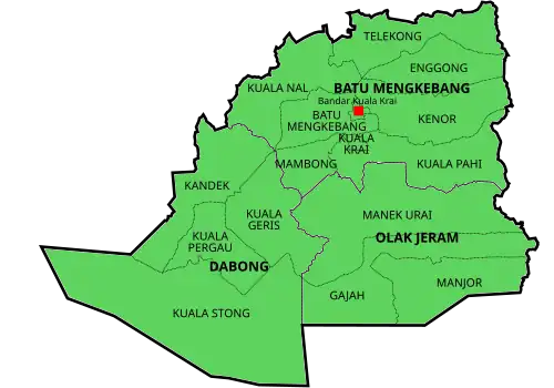 ![]() Kuala Krai District Location of Kuala Krai District in Malaysia | |