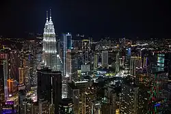 View of the KLCC precinct at night from the Kuala Lumpur Tower.