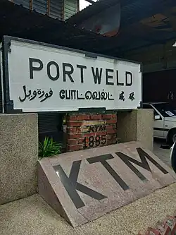 Port Weld is notable for being the terminal station of the first ever railway line to be built in what is today Malaysia. The Port Weld railway station was located at the centre of town. The whole railway line from here to Taiping was dismantled in the 1980s, and now only the ticketing booth and the multilingual Port Weld railway signboard remain. The ticketing booth is now a Chinese coffee shop, and the shopowner has been maintaining the railway signboard.