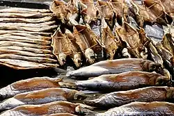 The most important local species for fisheries is the omul (Coregonus migratorius), an endemic whitefish.[29] It is caught, smoked, and then sold widely in markets around the lake. Also, a second endemic whitefish inhabits the lake, C. baicalensis.[50] The Baikal black grayling (Thymallus baicalensis), Baikal white grayling (T. brevipinnis), and Baikal sturgeon (Acipenser baerii baicalensis) are other important species with commercial value. They are also endemic to the Lake Baikal basin.[44][45][51][52]