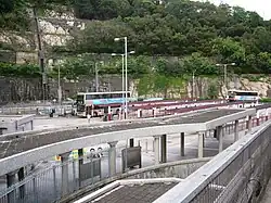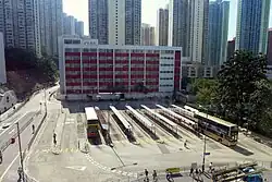The first bus terminus built in Lam Tin was then called Lam Tin Bus Terminus, which is today's Tak Tin Bus Terminus.[57] It is built on the slope of Lam Tin Hill, in the north part of Lam Tin Estate, to serve the neighbourhood's residents. Buses ran from Kwun Tong to the bus terminus through Lei Yue Mun Road, then turned left and ascended the hill along Kai Tin Road, Ping Tin Street, On Tin Street and Tak Tin Street.