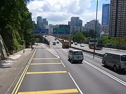 In 1989, Eastern Harbour Crossing was completed.[45] Kwun Tong Bypass was completed in 1991.[46] To construct an interchange for both roads, the intersection between Lei Yue Mun Road and Kai Tin Road was rebuilt into a flyover-roundabout. This made Lam Tin a bridge between the Eastern Harbour Crossing and the Kwun Tong Bypass of Route 2, with Lei Yue Mun Interchange as the exit point.