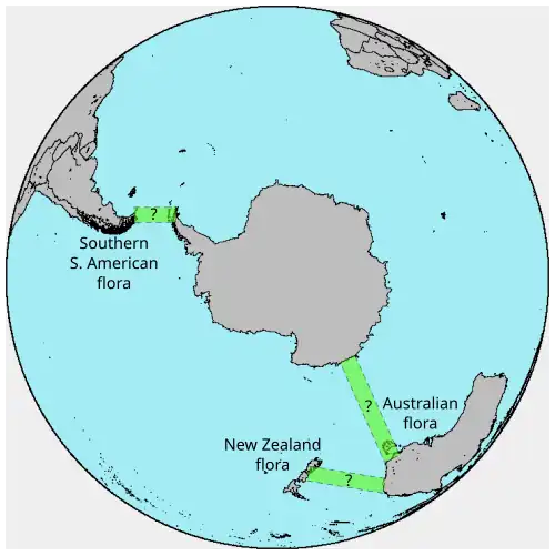 - ^ van den Ende, Conrad; White, Lloyd T.; van Welzen, Peter C. (2017-04-01). "The existence and break-up of the Antarctic land bridge as indicated by both amphi-Pacific distributions and tectonics". Gondwana Research. 44: 219–227. doi:10.1016/j.gr.2016.12.006. ISSN 1342-937X.