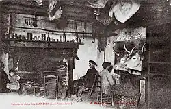 According to historians cows were numerous before the classic image emerged of the Landes shepherd watching from the top of his stilts as his sheep grazed the short heath. The great epizootic of 1775 destroyed the cows and sheep prevailed. Likewise, it was only after the disappearance of a large part of the forest, decimated in the 17th century by frost, fires and deforestation, that short heath emerged at the end of the 18th century.[15]