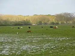 The Landes forest includes diverse landscapes.[7] To the north, the proximity of the Bordeaux vineyards offers landscapes of mixed pine and vines, where Échoppes and traditional Landes houses rub shoulders. To the south, the pines gradually give way to the green hills of the Chalosse in the foothills of the Pyrenees. The Côte d'Argent is home to forests with a different undergrowth from that of the interior of the Landes. Strawberry trees (Arbutus unedo), holm oaks (Quercus ilex) and cork oaks (Quercus suber) share the light that is not captured by the pines. At the heart of the forest massif, the presence of a few streams, and in particular the Leyre, is conducive to the development of a forest made up of deciduous trees often hiding the river: the gallery forest.