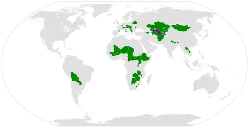 • Asia (5): Bhutan, Laos, Mongolia, Nepal, and South Ossetia (de facto state)[35]