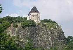 Landsberg Castle from the 12th century onwards was the seat of the Margraves of Landsberg. Held by the Saxon noble House of Wettin, it was rebuilt when Margrave Conrad of Meissen ceded the March of Lusatia with Landsberg to his son Theodoric I in 1156. A loyal follower of the Hohenstaufen emperor Frederick Barbarossa, Theoderic accompanied him on his Italian campaign of 1176/77 against the cities of the Lombard League and witnessed the peace negotiations leading to the Treaty of Venice. Back in Germany, he had a Staufian double chapel erected on the Landsberg castle hill. Built in a Romanesque style up on a cliff and visible even far from the town, it is one of Landsberg's landmarks up to today.