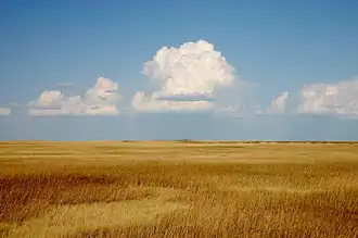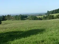 According to Richard Forman and Michael Godron,[16] a landscape is a heterogeneous land area composed of a cluster of interacting ecosystems that is repeated in similar form throughout, whereby they list woods, meadows, marshes and villages as examples of a landscape's ecosystems, and state that a landscape is an area at least a few kilometres wide. John A. Wiens[17] opposes the traditional view expounded by Carl Troll, Isaak S. Zonneveld, Zev Naveh, Richard T. T. Forman/Michel Godron and others that landscapes are arenas in which humans interact with their environments on a kilometre-wide scale; instead, he defines 'landscape'—regardless of scale—as "the template on which spatial patterns influence ecological processes".[18] Some define 'landscape' as an area containing two or more ecosystems in close proximity.[19]