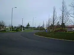 Central Park was boosted further in 2000 with the creation of 700 jobs by the multi-client Telecom Service Centre (TSC) facility.[42] Other occupants of the park include the travel firm Thomas Cook and the central Scotland baker Mathiesons, which has consolidated all operations onto one site. Glenbervie Business Park was developed next to Central Park with the help of local government and EU structural aid.[43] The 28-hectare (280,000 m2) site is suitable for a range of light industries.[43] Larbert lacks a supermarket, but the main street of the town is home to small retail outlets and a post office.