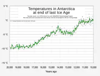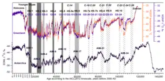 1. ^ Corrick, Ellen; et al. (August 21, 2020). "Synchronous timing of abrupt climate changes during the last glacial period". Science. 369 (6506): 963–969.