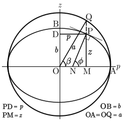 Definition of the parametric latitude (β) on the ellipsoid