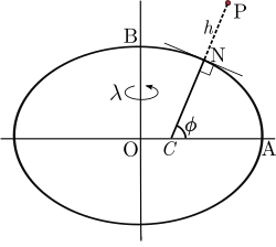 Geodetic coordinates P(ɸ,λ,h)
