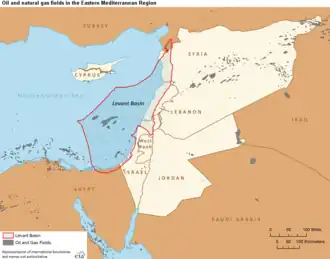 The Leviathan gas field is quite central in the south-eastern corner, the Levantine Basin.[3][4]