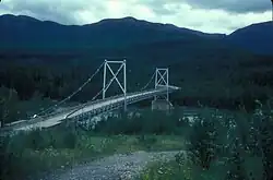 - The historic Liard River Suspension Bridge, built in 1944, is located at kilometre 798 of the Alaska Highway.