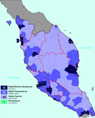Local government in Malaysia,[1] according to Local Government Act 1971 of Malaysia, means city councils, municipal councils and district councils.