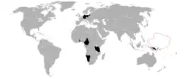 In the 18th century, the Dutch colonial empire began to decline as a result of the Fourth Anglo-Dutch War of 1780–1784, in which the Dutch Republic lost a number of its colonial possessions and trade monopolies to the British Empire, along with the conquest of the Mughal Bengal at the Battle of Plassey by the East India Company.[110][111][112] Nevertheless, major portions of the empire survived until the advent of global decolonisation following World War II, namely the East Indies and Dutch Guiana.[113] Three former colonial territories in the West Indies islands around the Caribbean Sea—Aruba, Curaçao, and Sint Maarten—remain as constituent countries represented within the Kingdom of the Netherlands.[113]