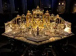 The Mughals adopted and standardised the rupee (rupiya, or silver) and dam (copper) currencies introduced by Sur Emperor Sher Shah Suri during his brief rule.[95][96] The Mughals minted coins with high purity, never dropping below 96%, and without debasement until the 1720s.[97]