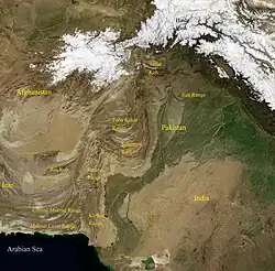 Satellite image of a part of the Sulaiman Range.