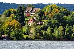 A peninsula (Latin: paeninsula from paene "almost" and insula "island") is a piece of land that is bordered mostly by water but connected to mainland.[1][2][3][4] The surrounding water is usually understood to be continuous, though not necessarily named as such. A peninsula can also be a headland, cape, island promontory, bill, point, or spit.[5] A point is generally considered a tapering piece of land projecting into a body of water that is less prominent than a cape.[6] In English, the plural of peninsula is peninsulas or, less commonly, peninsulae. A river which courses through a very tight meander is also sometimes said to form a "peninsula" within the (almost closed) loop of water.