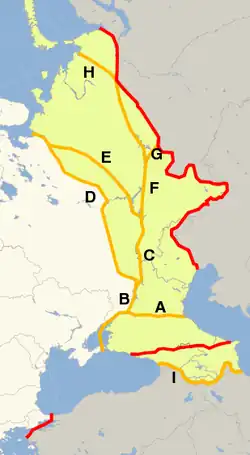 The conventional Asia-Europe boundary was subject to considerable variation during the 18th and 19th centuries, indicated anywhere between the Don River and the Caucasus to the south or the Ural Mountains to the east. Since the late 19th century, the Caucasus–Urals boundary has become almost universally accepted. According to this now-standard convention, the boundary follows the Aegean Sea, the Turkish Straits, the Black Sea, along the watershed of the Greater Caucasus, the northwestern portion of the Caspian Sea and along the Ural River and Ural Mountains to the Arctic Ocean.[8][9]